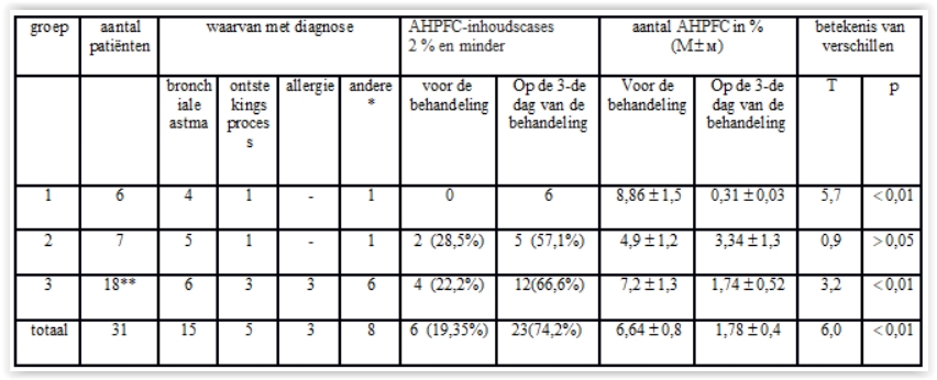 1. De invloed van de Buteyko-methode op het niveau van AHPFC